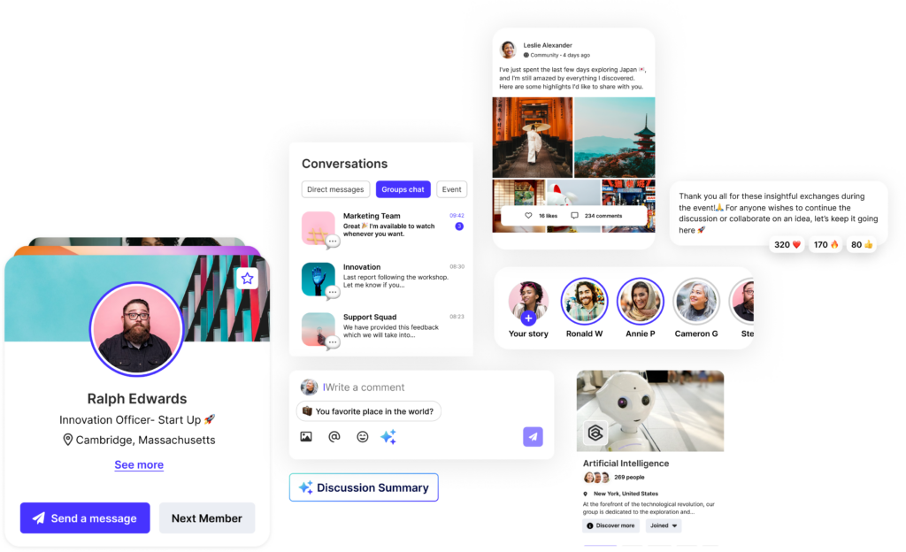 Build lasting connections within your community through AI-powered personalized experiences, targeted communications, and dynamic networking opportunities.